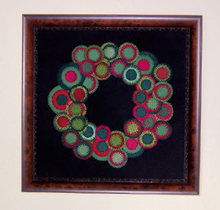I picked up my Wooly Wreath from the framer today and hung it up in our living room.